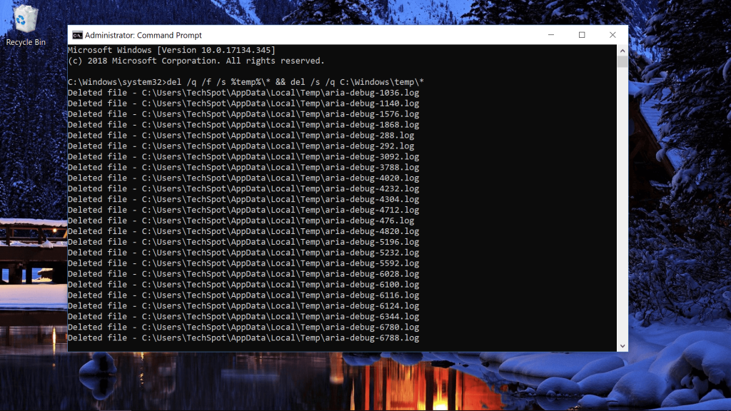 …Or run them together: del /q /f /s %temp%* && del /s /q C:\Windows\temp*