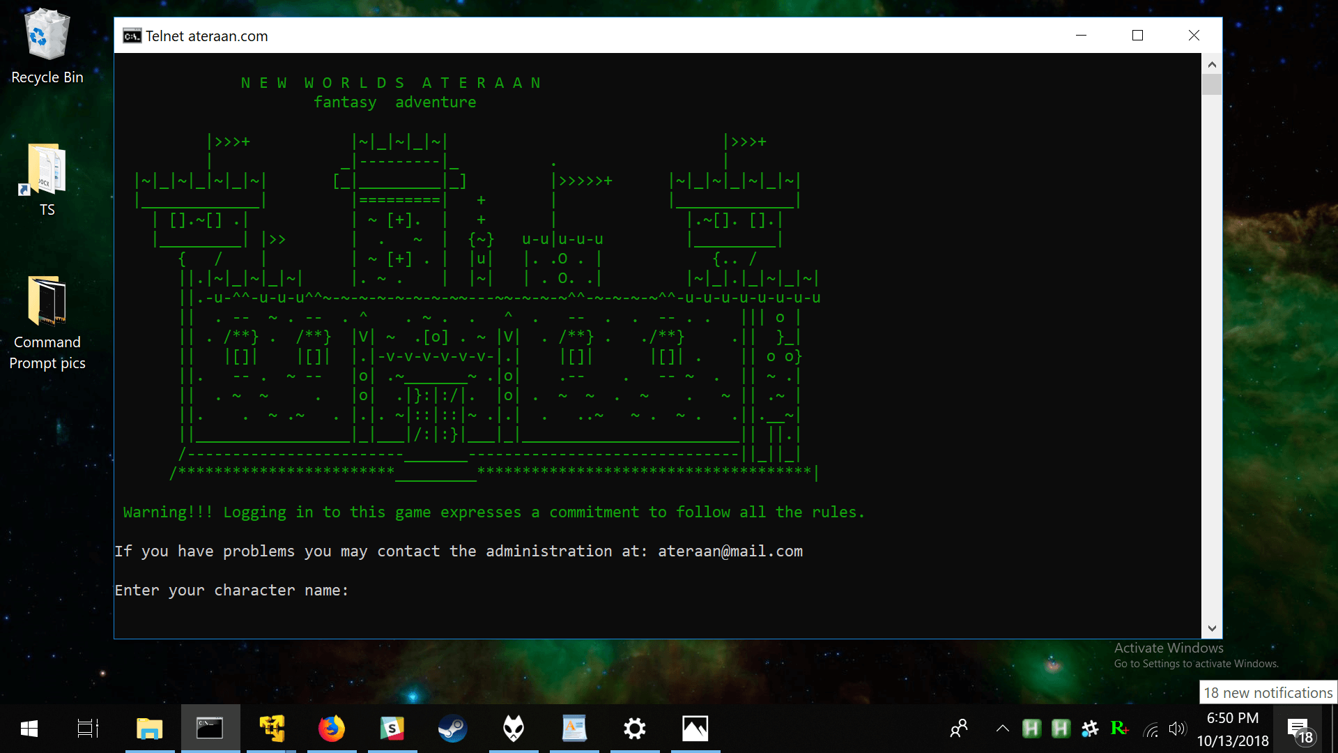 telnet ateraan.com 4002 (New Worlds – Ateraan)