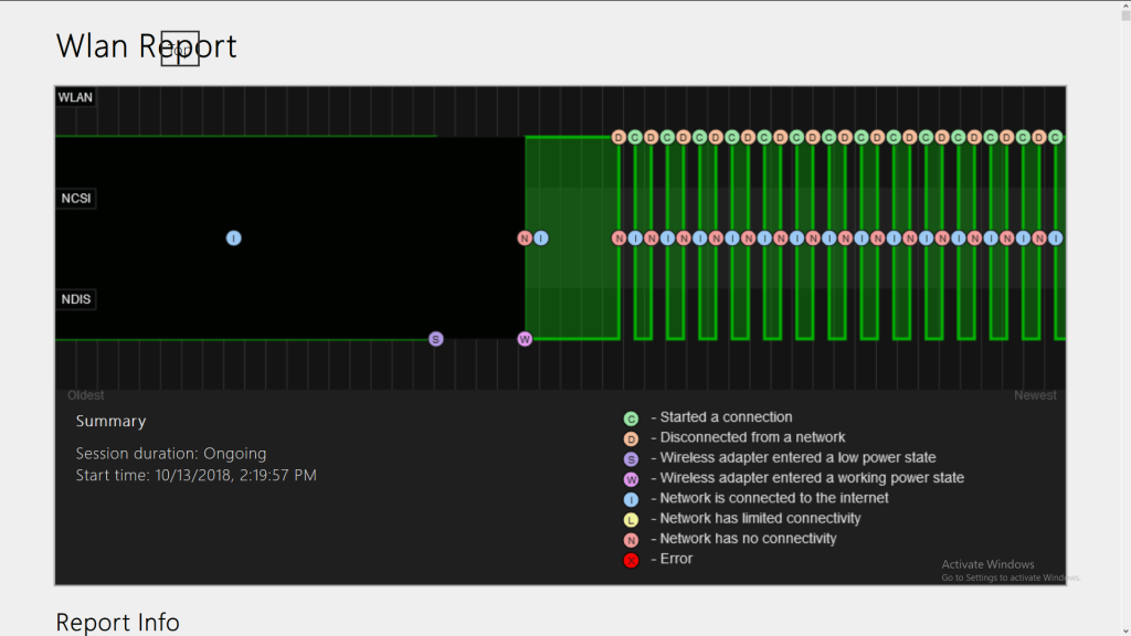netsh wlan show wlanreport (Generates a report with specs for your wireless hardware along with information about your connection history)