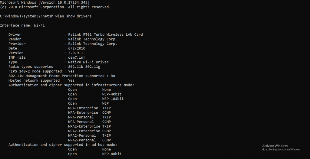 How to check if your hardware is capable: Enter netsh wlan show drivers and look for the line that reads “Hosted network support: Yes.”