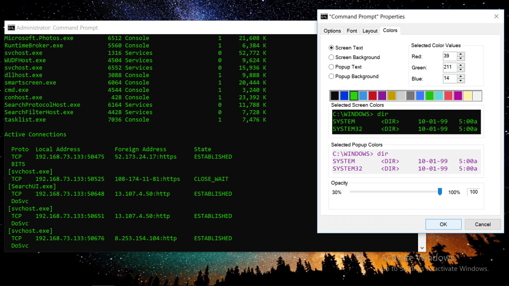 Right-click the title bar and open Properties for settings that include the ability to change your Command Prompt’s font, layout and colors, as well as options such as Quick Edit mode, which will automatically paste text from your clipboard when you right click in the window.